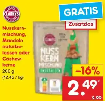 CLARKYS Nusskernmischung, Mandeln naturbelassen oder Cashew Kerne Aktion bei Netto Marken-Discount
