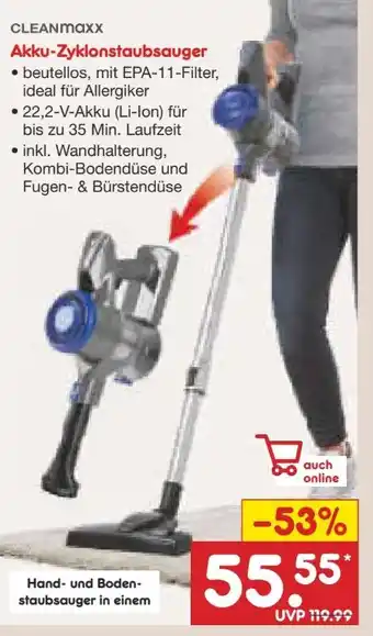 Clean Maxx Akku-Zyklonstaubsauger Angebote und Online Aktionen direkt aus dem aktuellen Netto Marken-Discount Angebot
