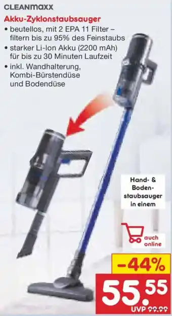 Jetzt im Angebot bei Netto Marken-Discount: CLEANMAXX Akku-Zyklonstaubsauger ✅ Aktion gültig vom 23-02 bis 28-02.