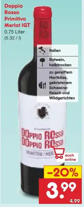 Jetzt im Angebot bei Netto Marken-Discount: Doppio Rosso Primitivo Merlot ✅ Aktion gültig vom 26-01 bis 1-02.