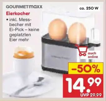 Das Angebot ist in verschiedenen Geschäften erhältlich. Schauen Sie sich alle Produkte an, um das günstigste Eierkocher zu ergattern. Wenn Sie gerne nachschauen möchten, ob der Artikel woanders noch günstiger ist, werfen Sie einen Blick auf die Kategorie 'Supermärkte'. Möglicherweise sind diese Angebote auch interessant für Sie: GOURMETmaxx Eierkocher, GOURMETmaxx Eierkocher & GOURMETmaxx Eierkocher Kompakt 2.0 250W.