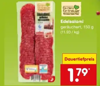 Jetzt im Angebot bei Netto Marken-Discount: Ein Herz für Erzeuger Edelsalami ✅ Aktion gültig vom 12-01 bis 18-01.