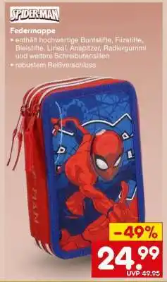 Abgesehen von Federmappe, bietet Netto Marken-Discount eine Menge anderer Artikel an. Behalten Sie den wöchentlichen Netto Marken-Discount Prospekt im Blick, um die besten Angebote und Aktionen nicht zu verpassen. Abgesehen von Federmappe können Sie weitere, interessante Angebote entdecken: SPIDERMAN Federmappe, Spiderman Federmappe gefüllt – Schuletui & Stiftebox mit Zubehör & Angebot 3.