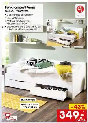 Abgesehen von Funktionsbett ANNA, bietet Netto Marken-Discount eine Menge anderer Artikel an. Behalten Sie den wöchentlichen Netto Marken-Discount Prospekt im Blick, um die besten Angebote und Aktionen nicht zu verpassen. Abgesehen von Funktionsbett ANNA können Sie weitere, interessante Angebote entdecken: Relita Funktionsbett Anna, Relita - Funktionsbett Anna 90x 200 auf 180 x 200 cm Liegefläche ausziehbar u. 2 Schubladen & Funktionsbett.