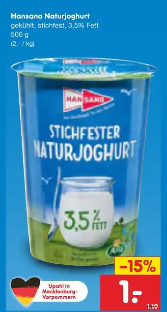 Jetzt im Angebot bei Netto Marken-Discount: Hansano naturjoghurt ✅ Aktion gültig vom 2-03 bis 7-03.