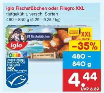 Jetzt im Angebot bei Netto Marken-Discount: iglo Fischstäbchen oder Filegro XXL ✅ Aktion gültig vom 19-01 bis 24-01.