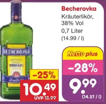 Jetzt im Angebot bei Netto Marken-Discount: Jan Becher Becherovka Kräuterlikör ✅ Aktion gültig vom 23-02 bis 1-03.