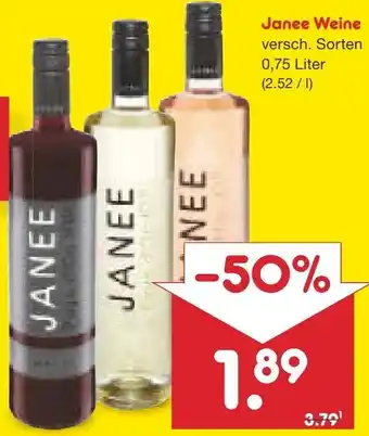 Janee Weine 0,75 Liter Aktion bei Netto Marken-Discount
