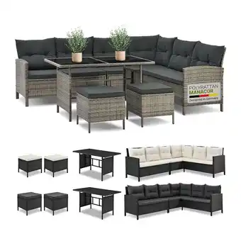 Jetzt im Angebot bei Netto Marken-Discount: Juskys Gartenlounge Manacor grau - Sofa, Tisch, Hocker & Kissen - 7 Personen - Sitzbezüge Grau ✅ Aktion gültig vom 30-01 bis 5-02.