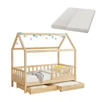 Jetzt im Angebot bei Netto Marken-Discount: Juskys Kinderbett Marli 80 x 160 cm mit Matratze, Bettkasten, Gitter, Lattenrost & Dach - Bett Natur ✅ Aktion gültig vom 19-12 bis 25-12.