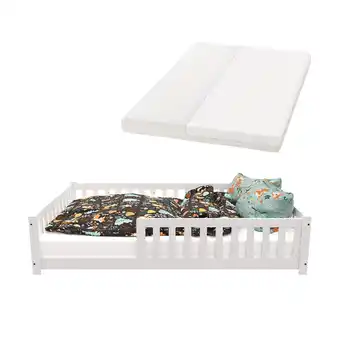 Juskys Kinderbett Naya 140x200 cm - Bett mit Matratze, Rausfallschutz & Lattenrost - Bodenbett Weiß-Rabatt bei Netto Marken-Discount