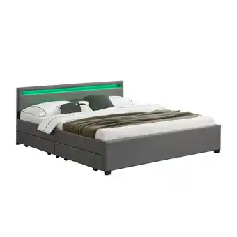 Juskys Polsterbett Lyon 180x200 cm mit Lattenrost, Bettkasten & LED Beleuchtung - grau-Rabatt bei Netto Marken-Discount