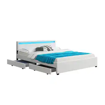 Juskys Polsterbett Lyon 180x200 cm mit Lattenrost, Bettkasten & LED Beleuchtung - weiß Aktion bei Netto Marken-Discount