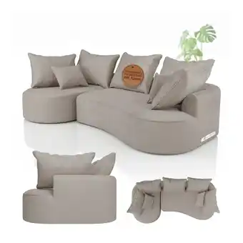 Juskys Sofa Tirano - Ecksofa L-Form, inkl. Kissen, 4-Sitzer Eckcouch, Samt Beige & Ottomane links-Angebot bei Netto Marken-Discount