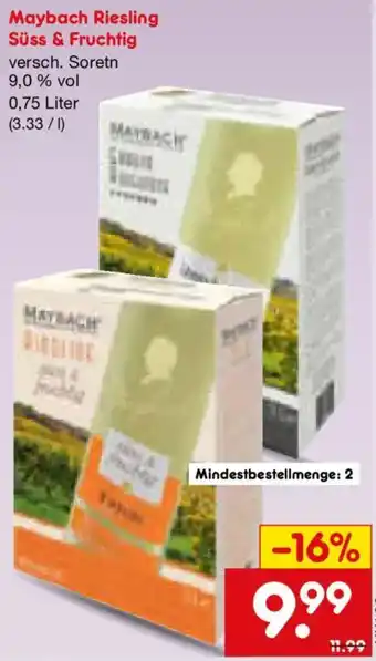 Maybach Riesling Süss & Fruchtig Angebote und Online Aktionen direkt aus dem aktuellen Netto Marken-Discount Angebot