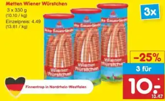 Jetzt im Angebot bei Netto Marken-Discount: Metten Wiener Würstchen ✅ Aktion gültig vom 5-01 bis 11-01.