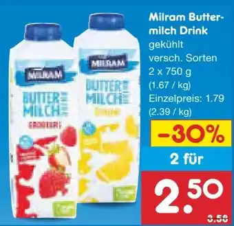 Jetzt im Angebot bei Netto Marken-Discount: Milram Buttermilch-Drink ✅ Aktion gültig vom 23-02 bis 1-03.