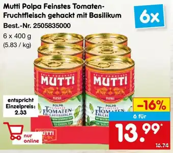 Mutti Polpa Feinstes Tomaten- Fruchtfleisch gehackt mit Basilikum Angebote und Aktionen bei Netto Marken-Discount