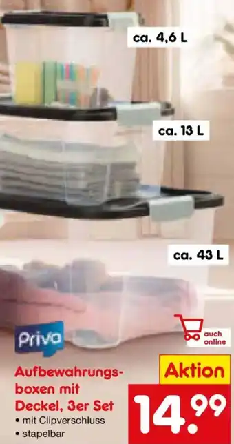 Priva Aufbewahrungsboxen mit Deckel, 3er Set Angebote und Aktionen bei Netto Marken-Discount