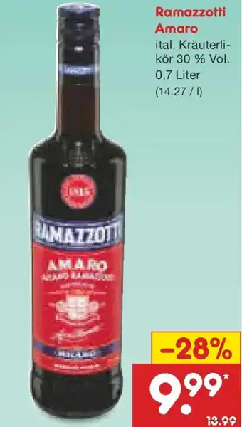 Ramazzotti Amaro Angebote und Aktionen bei Netto Marken-Discount