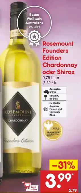 Rosemount Founders Edition Chardonnay oder Shiraz-Rabatt bei Netto Marken-Discount