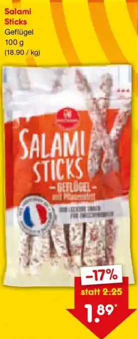 Jetzt im Angebot bei Netto Marken-Discount: Salami Sticks Geflügel ✅ Aktion gültig vom 16-03 bis 21-03.