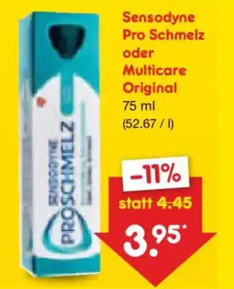 Jetzt im Angebot bei Netto Marken-Discount: Sensodyne Pro Schmelz oder Multicare Original ✅ Aktion gültig vom 9-03 bis 14-03.