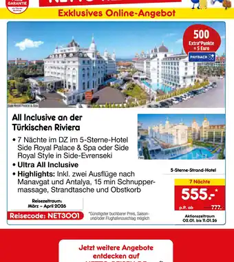 Jetzt im Angebot bei Netto Marken-Discount: Side royal palace & spa oder side royal style ✅ Aktion gültig vom 5-01 bis 10-01.