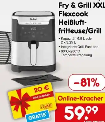 Jetzt im Angebot bei Netto Marken-Discount: Tefal EY801D Easy Fry & Grill XXL Flexcook Heißluftfritteuse/Grill ✅ Aktion gültig vom 20-04 bis 26-04.