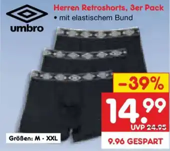 Jetzt im Angebot bei Netto Marken-Discount: umbro Herren Retroshorts, 3er Pack ✅ Aktion gültig vom 16-03 bis 21-03.