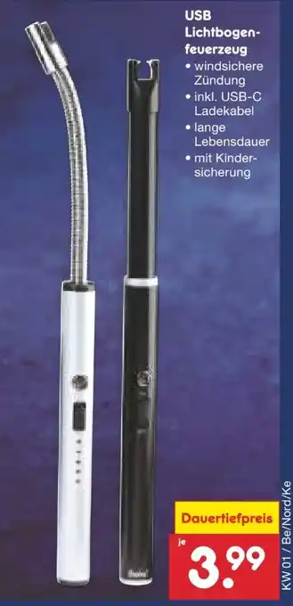 Jetzt im Angebot bei Netto Marken-Discount: USB Lichtbogen Feuerzeug ✅ Aktion gültig vom 29-12 bis 4-01.