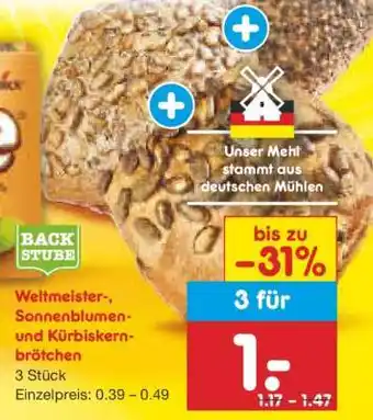 Weltmeister-, Sonnenblumen- und Kürbiskernbrötchen Aktion bei Netto Marken-Discount