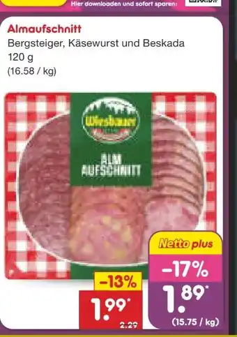 Jetzt im Angebot bei Netto Marken-Discount: Wiesbauer Almaufschnitt ✅ Aktion gültig vom 16-02 bis 22-02.