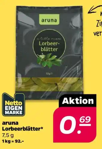Jetzt im Angebot bei NETTO: aruna Lorbeerblätter ✅ Aktion gültig vom 27-04 bis 2-05.