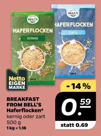 Jetzt im Angebot bei NETTO: Bell's haferflocken ✅ Aktion gültig vom 27-04 bis 2-05.