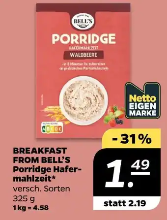 Bell's porridge hafermahlzeit waldbeere Angebote und Aktionen bei NETTO