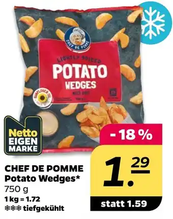 Jetzt im Angebot bei NETTO: CHEF DE POMME Potato Wedges ✅ Aktion gültig vom 16-02 bis 21-02.