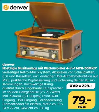 Jetzt im Angebot bei NETTO: denver Nostalgie Musikanlage mit Plattenspieler 4-in-1 MCR-50MK3 ✅ Aktion gültig vom 2-02 bis 7-02.