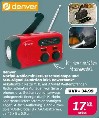 Jetzt im Angebot bei NETTO: denver Notfall-Radio mit LED-Taschenlampe und SOS-Signal-Funktion inkl. Powerbank ✅ Aktion gültig vom 27-04 bis 2-05.