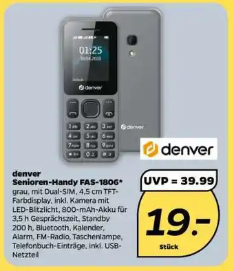 Jetzt im Angebot bei NETTO: denver Senioren-Handy FAS-1806 ✅ Aktion gültig vom 19-01 bis 24-01.