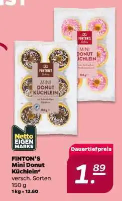Jetzt im Angebot bei NETTO: FINTON’S Mini Donut Küchlein ✅ Aktion gültig vom 9-02 bis 14-02.