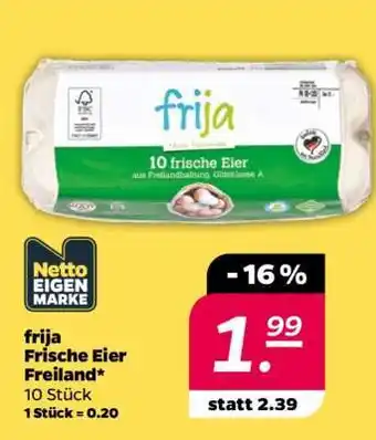 Jetzt im Angebot bei NETTO: frija Frische Eier Freiland ✅ Aktion gültig vom 12-01 bis 17-01.