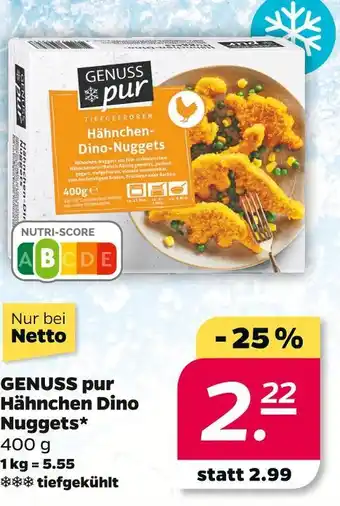Jetzt im Angebot bei NETTO: Genuss pur hähnchen dino-nuggets ✅ Aktion gültig vom 22-12 bis 27-12.