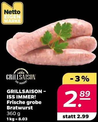 GRILLSAISONISS IMMER! Frische grobe Bratwurst Angebote und Aktionen bei NETTO