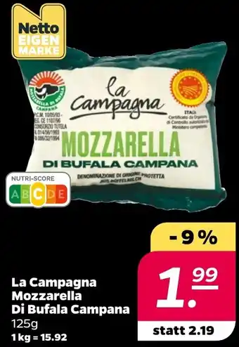 Jetzt im Angebot bei NETTO: La Campagna Mozzarella Di Bufala Campana ✅ Aktion gültig vom 16-02 bis 21-02.