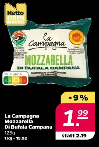 Jetzt im Angebot bei NETTO: La campagna mozzarella di bufala campana ✅ Aktion gültig vom 23-02 bis 28-02.