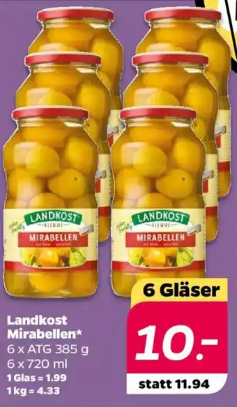 Den Preis von dem Landkost Mirabellen finden Sie auch oben auf der Website, zusammen mit dem Datum, ab wann das Angebot erhältlich ist. Sie können die Preise auch im aktuellen NETTO Prospekt nachhalten oder auf der NETTO Website nachschauen. Durch die Angebote können Sie sicher sein, die NETTO Produkte zum absoluten Bestpreis zu ergattern.