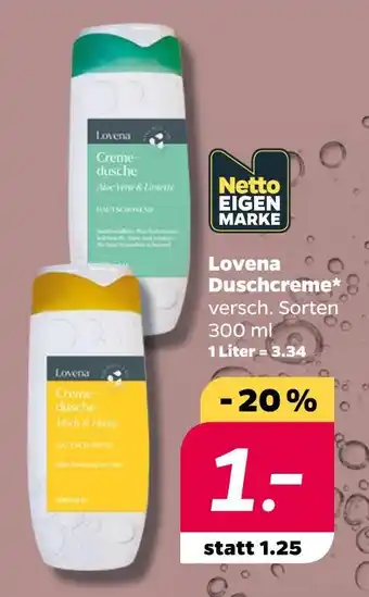 Jetzt im Angebot bei NETTO: Lovena duschcreme ✅ Aktion gültig vom 5-01 bis 10-01.