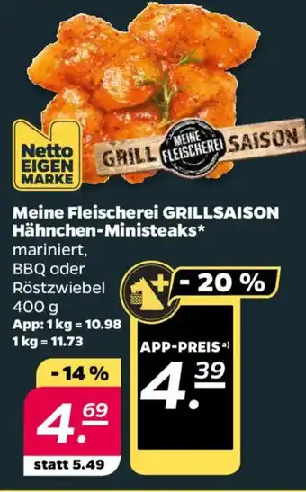 Jetzt im Angebot bei NETTO: Meine Fleischerei GRILLSAISON Hähnchen-Ministeaks ✅ Aktion gültig vom 27-04 bis 2-05.