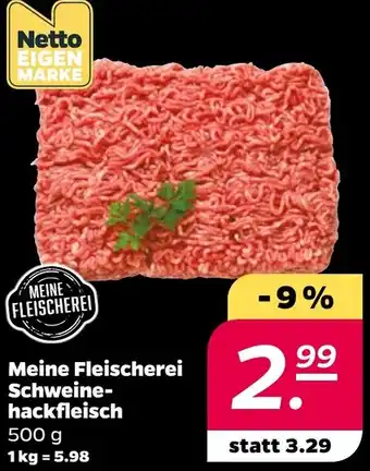 Jetzt im Angebot bei NETTO: Meine Fleischerei Schweinehackfleisch ✅ Aktion gültig vom 2-02 bis 7-02.